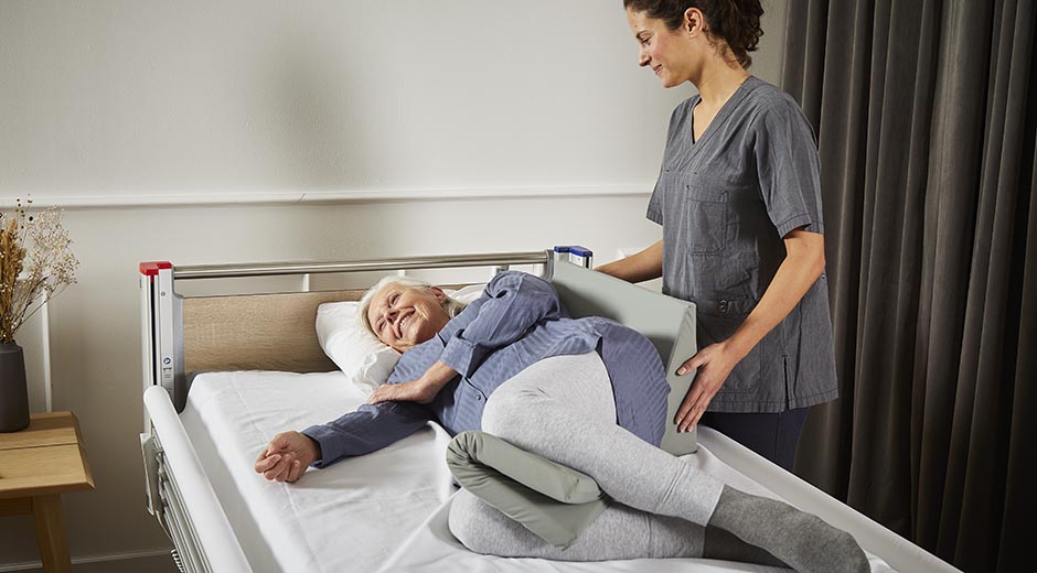 The positioning cushion LEJRELET Wedge is not only suitable for care homes and hospitals but can also be used singlehandedly at home