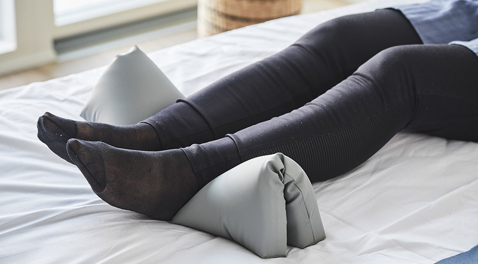 Using Wedge and Pad High, it is possible to create a knee-break exactly where the client’s knees are, by placing wedge with the flat inwards and the lower legs on tip of Pad High and relieve the legs, heels, and lower back.