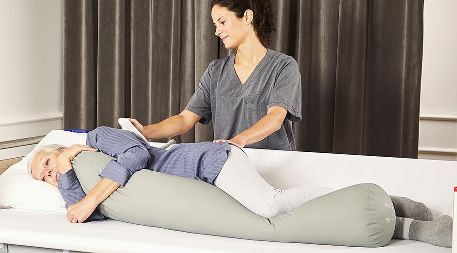 This cylindrical bolstering cushion is filled with high-quality pressure-relieving foam granulate. This makes it ideal for patients or clients in risk of developing pressure ulcers and for relieving existing pressure ulcers.