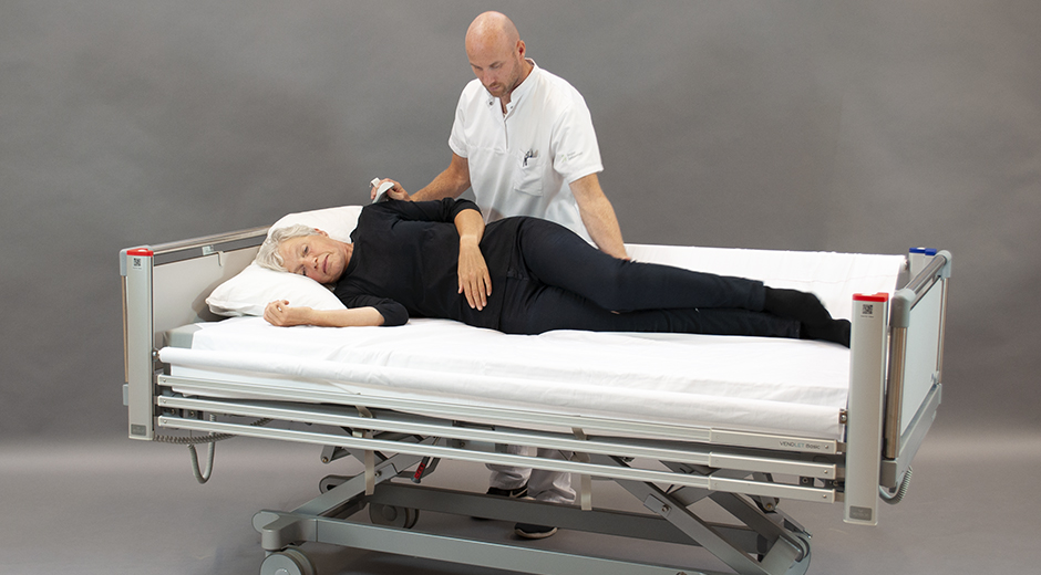 However, VENDLET Basic can also be used by the client, typically in cases where the client retains function in some limbs and is cognitively capable of understanding how to use the system. Among other things, the client can use the system to reposition themselves during the night. This presupposes that the side rails are left up during the night.